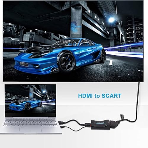 JEYEFFE Adattatore da HDMI a SCART convertitore adattatore di formato PAL/NTSC, adattatore video 1080P per HDTV STB Xbox PS3 Sky DVD Blu-ray PC (HDMI to SCART)
