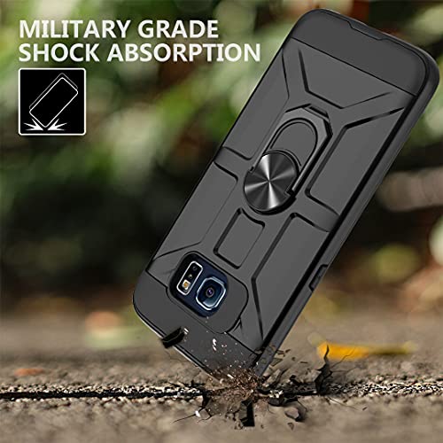 Jeylly Custodia per Samsung Galaxy S6 con protezione dello schermo in vetro temperato, custodia completa con supporto girevole a 360 gradi, custodia protettiva antiurto per Galaxy S6 S VI G9200, nero