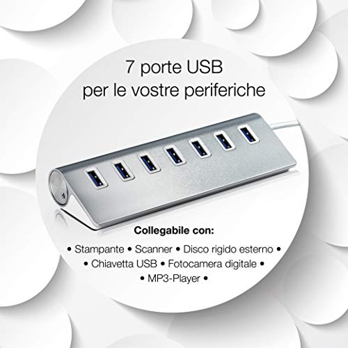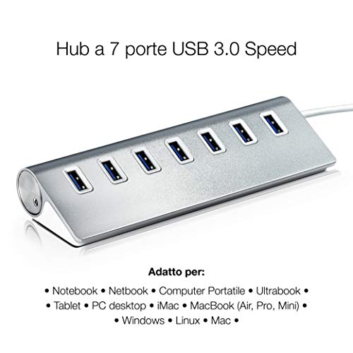 JEYSTECH Hub Usb 3.0, 7 Porte Usb 3.0 multiple in Alluminio Sdoppiatore Usb, Multipresa Usb Portatile, Porte Usb Multiple Per Pc, Laptop, Tastiera, Mouse, Adattatore Usb Per Windows, Mac Os X, Linux
