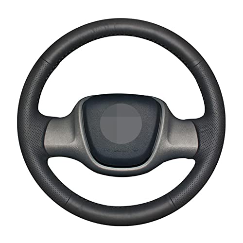 JEZOE Coprivolante in pelle nera Coprivolante per auto cucito a mano, adatto per Smart Fortwo