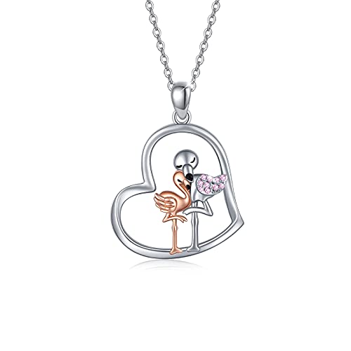 JFASHOP Fenicottero catena donna 925 argento sterling ciondolo fenicottero per le donne fenicottero collana uccello fenicottero compleanno gioielli animali per ragazze bambini figlia