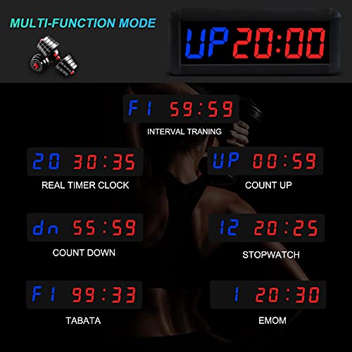 Jhering LED Timer Intervallo, Cronometro, Conto alla Rovescia Orologio, Timer da palestra con Telecomando, Timer di Allenamento per Garage di Casa Palestra Fitness, Tabata EMOM MMA(Blu/Rosso)