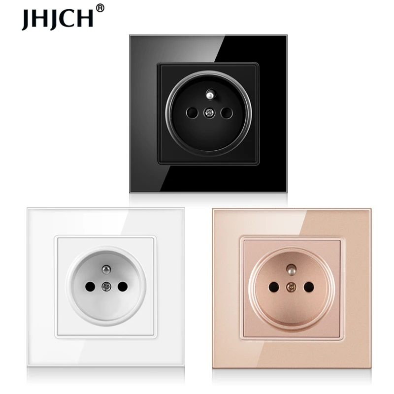 JHJCH French standard plug, glass wallboard, French power supply, 16a 220V grounding socket, child protection door