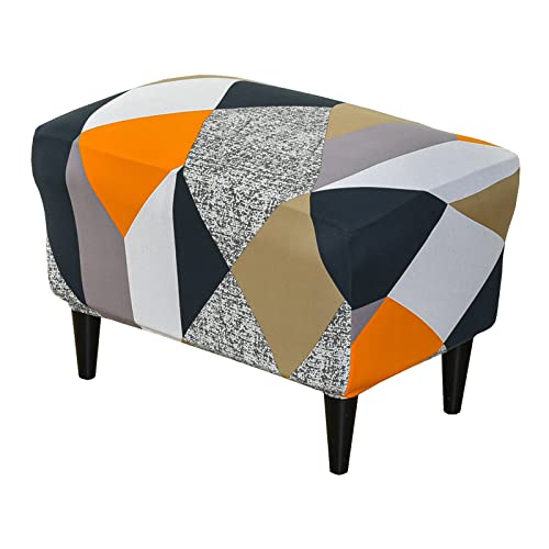 JHLD Copri Pouf Elasticizzato, Rettangolare Copri Poggiapiedi Stampato Copertura dell'Ottomano Elastico Fodera per Pouf Rimovibili e Lavabili per Soggiorno -Q-Grande