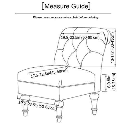 Dimensioni della sedia con accento senza braccioli adatte: L'altezza dello schienale della sedia 13"-17" (33-43cm), Larghezza posteriore 19.5"-23.5" (50-60cm), Lunghezza del sedile 18"-22" (46-56.5cm). Larghezza del sedile: 19.5"-23.5" (50-60cm).Spessore del sedile della sedia 8.6"-11" (22-28cm). Si prega di fare riferimento alla tabella delle taglie nella foto, e misurare la sedia prima di ordinare per garantire la migliore vestibilità.