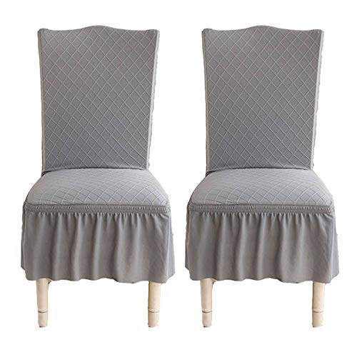 JHLD Jaquard Coprisedie con Schienale, Elasticizzato Copertura della Sedia con Gonna Lavabile Coprisedia con Schienale Coprisedie Sala da Pranzo per Casa,Hotel-Grigio Chiaro-Set di 2