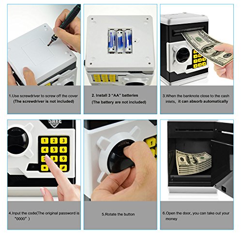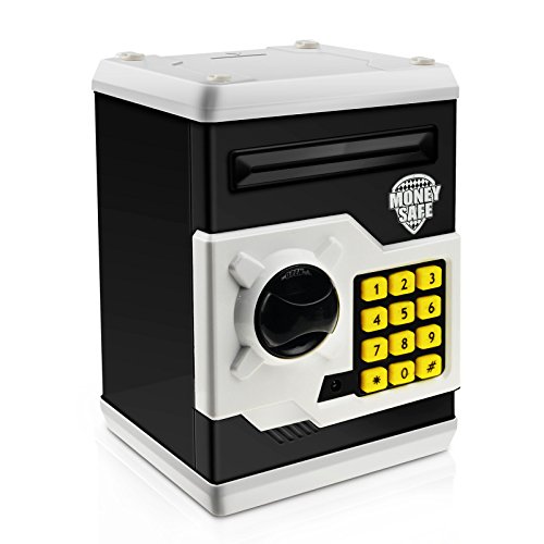 SCATOLA DI DENARO MULTIUSO: Oltre alla funzione fontamentale di depositare i tuoi soldi, questo "salvadanaio elettronico" dispone di un grande spazio per depositare cose come gioielli da giocotolo, carte da baseball o carte da gioco. L'apertura di monete nella parte superiore consente di utilizzare la cassaforte come un salvadanaio.