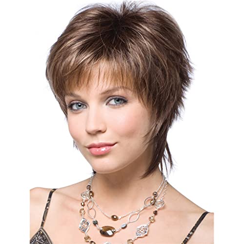JHYS Parrucche di Media Lunghezza, Parrucche per Donna Capelli Corti Sintetici Lisci Castani Che mescolano Capelli Naturali Resistenti al Calore Uso Quotidiano