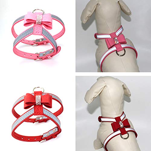 Jiacheng29 _ Pettorina per cani e cuccioli, da viaggio, con fiocco, regolabile, con strass riflettenti, colore rosso S