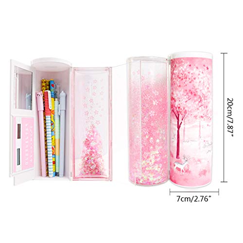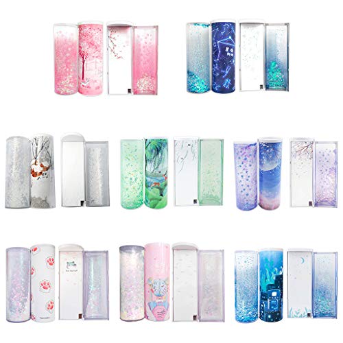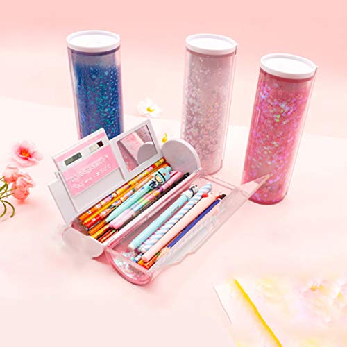 JIACUO Quicksand Portapenne Traslucido Multifunzione Calcolatrice cilindrica Creativa Portapenne per Scuola di cancelleria