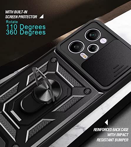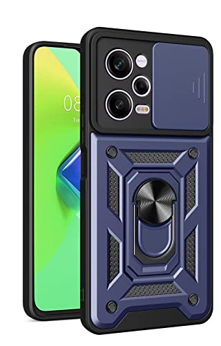JIAFEI Cover Armor per Xiaomi Redmi Note 12 Pro+ Plus 5G, Custodia TPU+PC Antiurto con Scorrevole Protezione Fotocamera Cover con 360° Anello Supporto, Blu