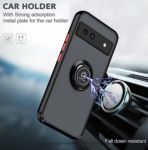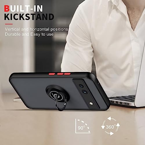 【Custodia per Google Pixel 7a con anello】La staffa ad anello in metallo integrata può essere ruotata a 360° liberamente, che consente di sopportare in modo frizzante le direzioni orizzontali e verticali, liberando le mani dall'essere legate. L'angolo di apertura di 100° si adatta perfettamente all'arco delle dita per evitare che il telefono si rompa. La lamiera magnetica in metallo può essere direttamente adsorbita al telaio magnetico di fissaggio dell'auto.