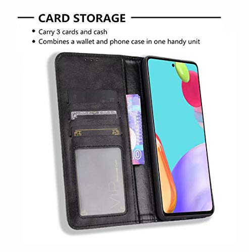 JIAFEI Cover per Oppo A54 5G / A74 5G, Premium TPU + PU Antiurto Flip retrò Portafoglio Case, con Slot per Schede Funzione Staffa, Nero