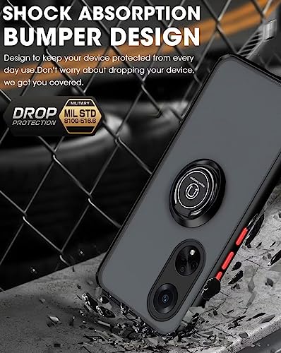 【Custodia per Oppo A98 5G con anello】La staffa ad anello in metallo integrata può essere ruotata a 360° liberamente, che consente di sopportare in modo frizzante le direzioni orizzontali e verticali, liberando le mani dall'essere legate. L'angolo di apertura di 100° si adatta perfettamente all'arco delle dita per evitare che il telefono si rompa. La lamiera magnetica in metallo può essere direttamente adsorbita al telaio magnetico di fissaggio dell'auto.
