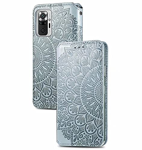 JIAFEI Cover Protettiva per Xiaomi Redmi Note 10 PRO Case, Premium Embossed PU + TPU Flip Pelle Antiurto Portafoglio Case Custodie, Grigio