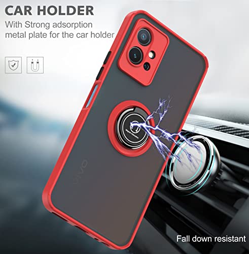 JIAFEI Cover per Vivo Y55 5G Traslucido PC/TPU Silicone Antiurto Custodia con 360 Girevole Magnetica Ring Supporto, Rosso