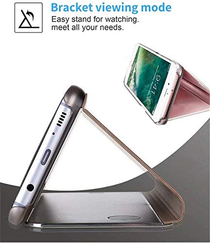 JIAFEI Custodia per Samsung Galaxy A41, Custodia Luxury Mirror Flip Traslucido Clear View Specchio Standing Cover Anti Shock Placcatura Smart Cover Protezione, Oro