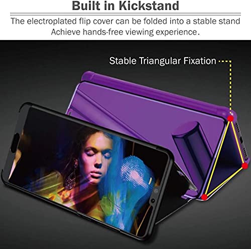 JIAFEI Custodia per Samsung Galaxy S22 Plus(S22+), Custodia Luxury Mirror Flip Traslucido Clear View Specchio Standing Cover Anti Shock Placcatura Smart Cover Protezione, Viola Blu