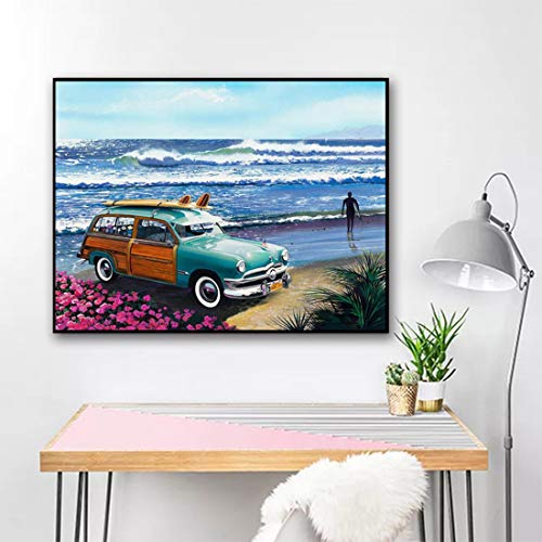 JiaHome 5D DIY Diamond Painting Kit, Diamond Macchina in Riva al Mare DIY Pittura Diamante, Art Pittura Diamante Punto Croce Painting By Numbers,40*30cm