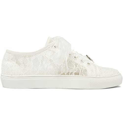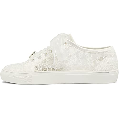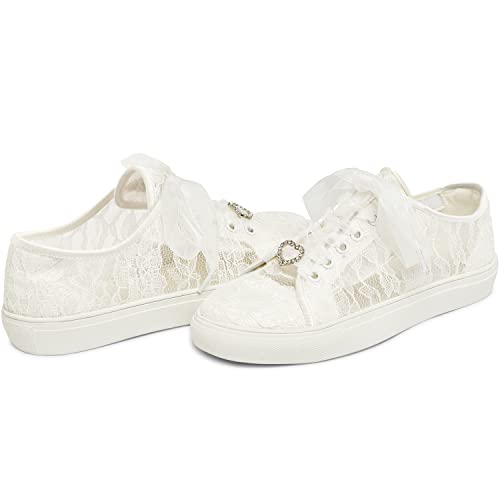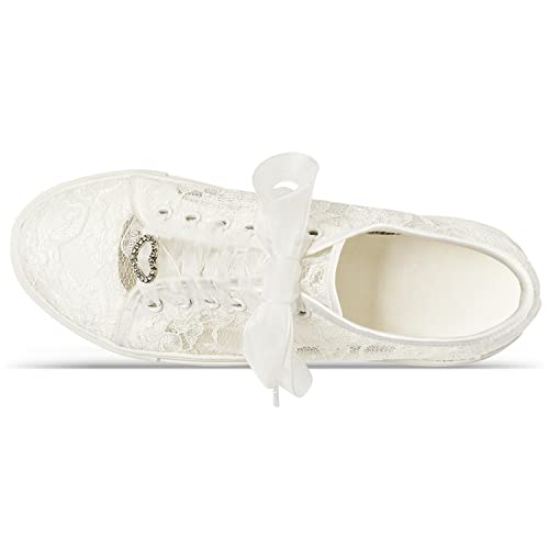 JIAJIA 8832 Scarpe da Sposa Scarpe da Ginnastica Appartamenti Sposa Tennis Scarpe Pizzo Scarpe da Ginnastica Colore Avorio, Taglia 35 EU