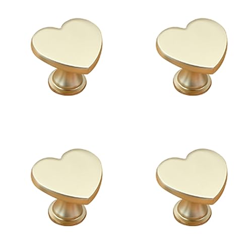 Jiajulashou123 4 Pcs Pomelli per Cassetti Pomelli per Mobili per Bambini Pomelli per Armadietti Pomelli Forma di Cuore per Casa,Porte,Cassetto,Camera da letto,Decorazione (Gold)