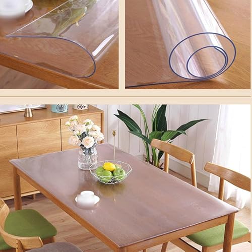 Materiale della tovaglia: PVC, lavabile impermeabile antiscivolo antigraffio resistente agli urti, adatto al contatto con gli alimenti Le nostre tovaglie trasparenti, morbide e flessibili, pellicola protettiva con spessore di 1,5 mm per mantenere il tavolo senza graffi, questa è una buona scelta se si desidera proteggere il vostro tavolo.