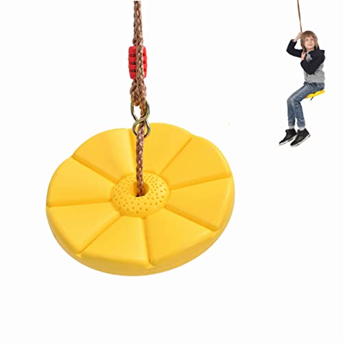 Jiakalamo - Altalena a disco con corda regolabile, altalena rotonda per bambini, con forte disco, per esterni, giardino, parco giochi (giallo)