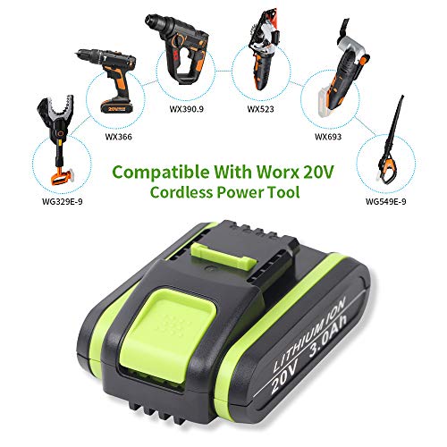 Jialitt 3.0Ah Batteria Sostitutiva per Batteria Worx 20V, WA3551 WA3551.1 WA3553 WA3553.1 WA3553.2 WA3572 WA3641