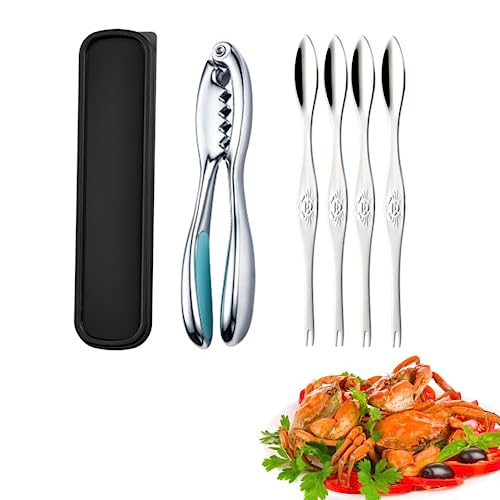 JIAMIAN 5 Pezzi Acciaio Inossidabile Seafood Tools Set Comprensivo di 1 Cracker Aragosta Granchio e 4 Forchette, Set per Frutti di Mare, Set Utensili per Crostacei