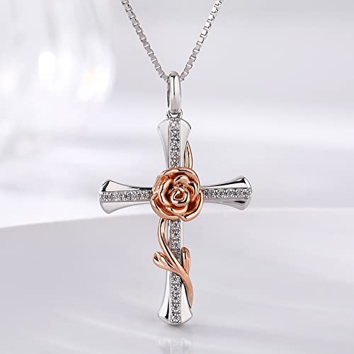 Jiamiaoi Collana con croce per donna Collana con ciondolo croce in argento sterling 925 Collana con ali incrociate in argento con croce religiosa gioielli (Cross-Rose 2)