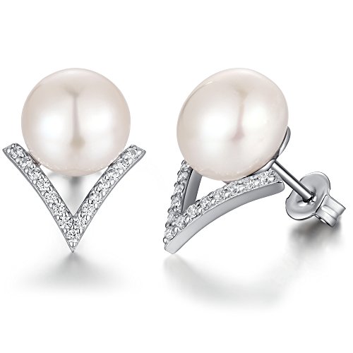 Jiamiaoi Orecchini di perle Orecchini a bottone con perle da donna Orecchini di perle Argento Orecchini con perle d'acqua dolce Orecchini di perle per ragazze donna