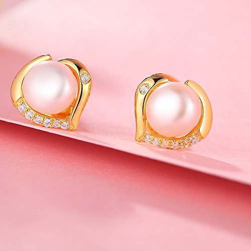 Jiamiaoi Perle Orecchini in argento Sterling 925 orecchini di perla perle d' acqua dolce 7.5 - 8 mm, da donna moda orecchini di perle