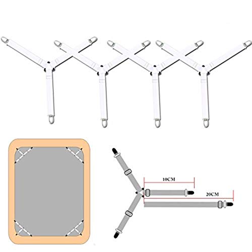 JIAN YA NA, 4 clip triangolare per lenzuola, con elastici regolabili a 3 vie, con clip in metallo, per materasso, angoli e angoli, ideali per copriasse da stiro, colore: bianco