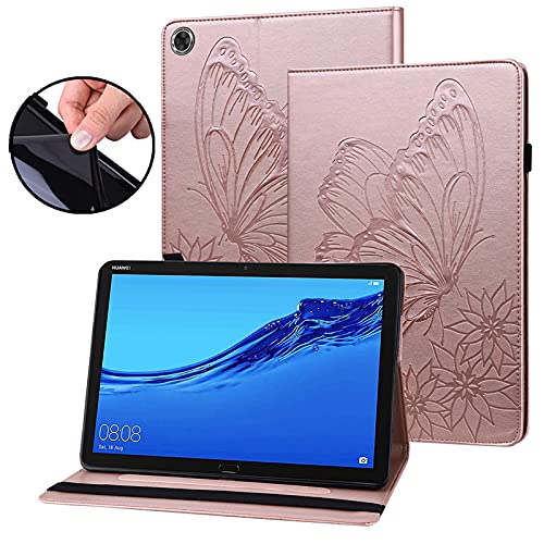 JIan Ying Custodia per Huawei Mediapad M5 lite 10.1 pollice Tablet Slim Fashion Protector Cover Rosa farfalla
