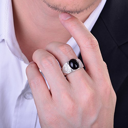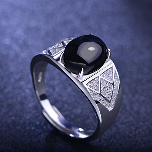 JIANGXIN Anello Uomo Nero Argento 925 Regolabile Design ottimo Lusso Lucido 5A Cubic Zirconia/Agata nera Men 's Ring Anniversario di Matrimonio regalo perfetto (Agata-Ovale)
