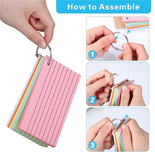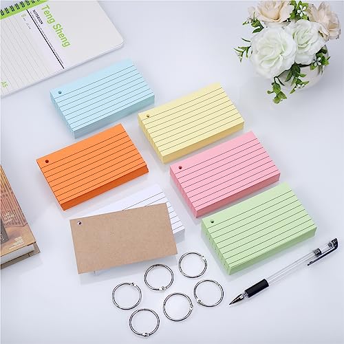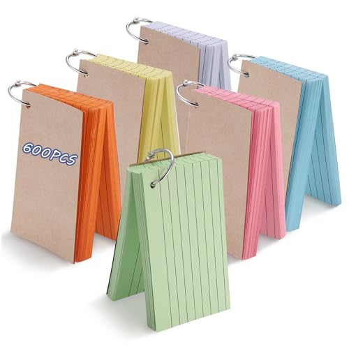 JIANTA Flashcards, 600 Pezzi Flash Cards, Carte di Studio in Carta Kraft Multicolore, Scheda Indice con Raccoglitore ad Anelli per Scuola Ufficio 12,7 x 7,6 cm