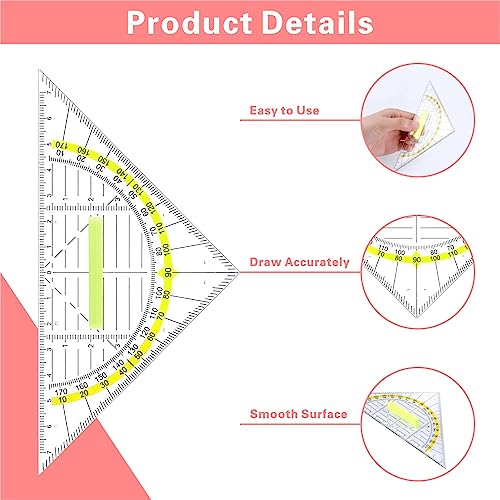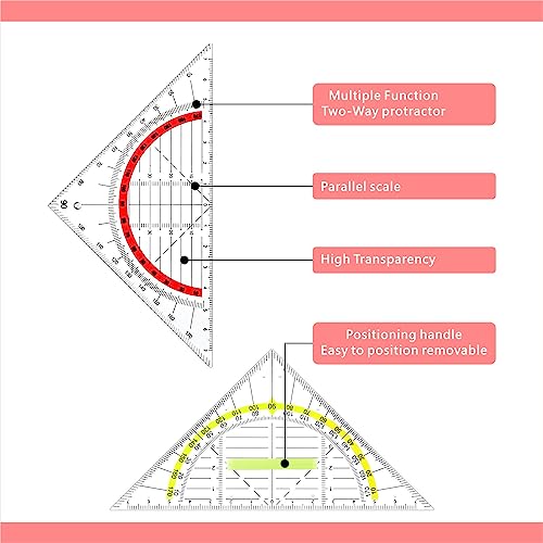 【Funzione Multipla】 Il goniometro in plastica JIANTA è un righello a triangolo multifunzionale che può essere utilizzato per misurare angoli, lunghezze e altri compiti geometrici.