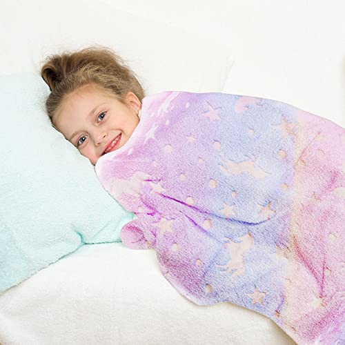 Jianyana Coperta per bambini, 152 x 127 cm morbida e calda coperta fosforescente coperta pile singolo soffice coperta luminosa per bambini e bambine (unicorno rosa-viola)