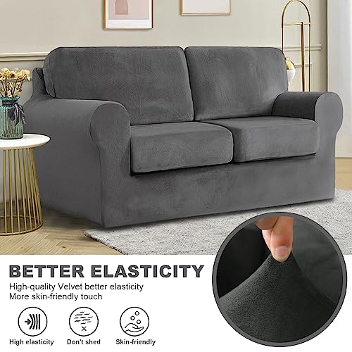 Jianyana Copridivano in Velluto con Schienali Separati E Cuscini Seduta, Copridivano Antiscivolo con Fascia Elastica, Copridivano Elasticizzato Copridivani Antimacchia (grigio, 2 posti, 5 pezzi)