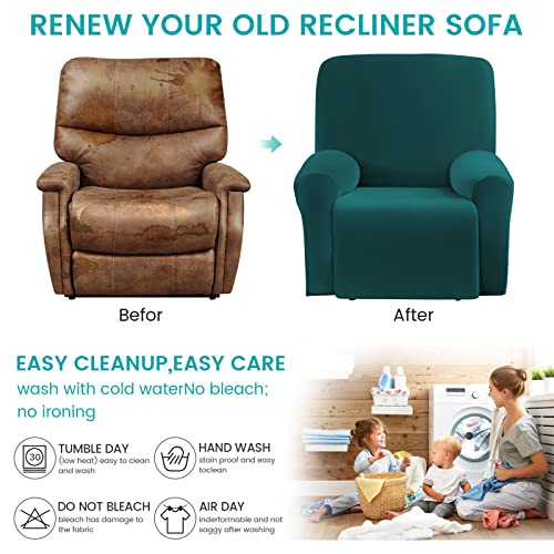 Jianyana Velluto Copripoltrona Relax Reclinabile Universale in 4-Pezzo,Premium Copripoltrona elettrica reclinabile Antiscivolo 1 Posto, Fodera per Poltrona Reclinabile (verde smeraldo) ...
