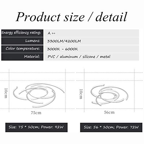 ★ [Dimensioni plafoniera LED] - L: 56 cm (22 ") × H: 10 cm (3,9") / L: 75 cm (30 ") × H: 10 cm (3,9"), lampadina a LED inclusa, potenza massima: 72 W / 92 W, materiale: alluminio e acrilico. Dimmer continuo (luce bianca fredda-luce naturale-luce bianca calda), con telecomando, luminosità e oscurità possono essere regolati.
