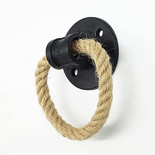 JIAOLUN123 2 pezzi Maniglia per Porta di corda di canapa vintage Pomello della porta scorrevole in ferro battuto Tiretti della dell'armadio Maniglione del cassetto anello di trazione (Black)