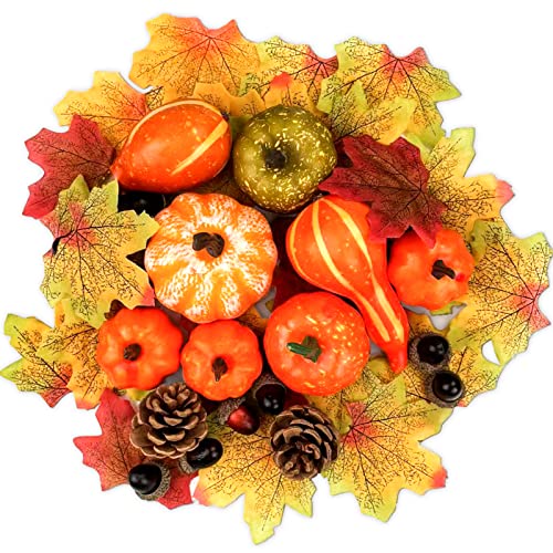 JIASHA 50 Pezzi Zucche Artificiali Ghiande Artificiali Pigne Foglie di Acero, Zucche Artificiali per Halloween, Set Decorazioni Ringraziamento, per la Decorazione Della Festa Domestica (50)