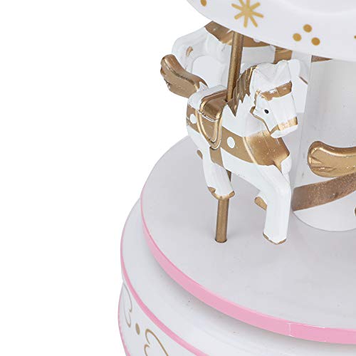 Jiawu Carousel Horse Music Box con 4 Cavalli rotanti, Luce Musicale a Colori, Cambio di Colore Luminoso Natale San Valentino Compleanno Anniversario Regalo per Moglie, Ragazza, Bambini(White + Pink)