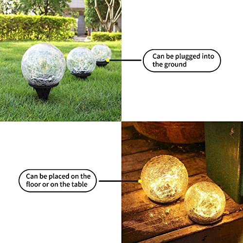 【Auto Turn On/Off】:The solar LED crackle glass ball lamps outdoor has a automatically light sensor,, which makes it turn on in the dark and turn off in the days or a well-lit place.Let you enjoy the perfect combination of technology and life.It is very easy to install,just remove the isolator tab, turn on the switch and make the pieces together.