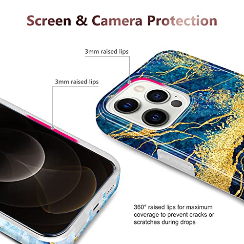 JIAXIUFEN Compatibile con iPhone 13 Pro Max Custodia Oro Glitter Marmo Sottile Antiurto TPU Morbida Gomma Silicone Cover Custodia Per iPhone 13 Pro Max 6.7 pollici 2021 Blu Scuro