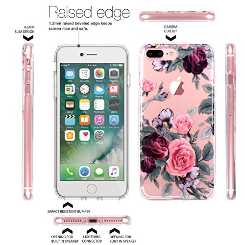 JIAXIUFEN Fiore Floreale Design Pink Purple Rose TPU Gel Silicone Protettivo Skin Custodia Protettiva Shell Case Cover Compatibile con iPhone 7 Plus iPhone 8 Plus