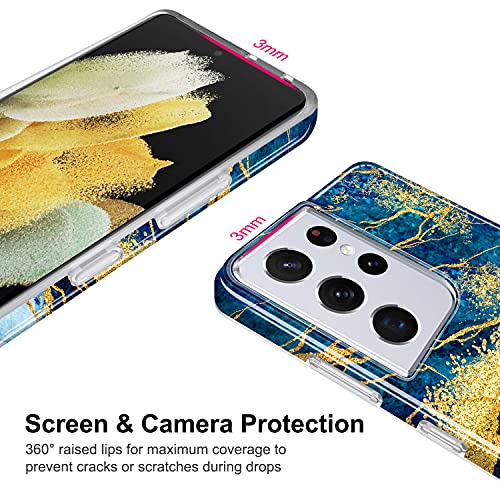 JIAXIUFEN Galaxy S21 Ultra Case Oro Glitter Glitter Marmo Sottile Antiurto TPU Morbida Gomma Silicone Cover Custodia Per Samsung Galaxy S21 Ultra 5G 6.8 pollice 2021 Blu Scuro