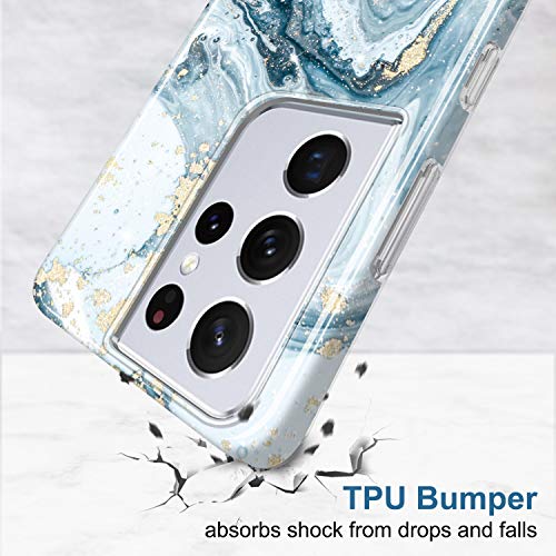 JIAXIUFEN Galaxy S21 Ultra Case Oro Glitter Glitter Marmo Sottile Antiurto TPU Morbida Gomma Silicone Cover Custodia Per Samsung Galaxy S21 Ultra 5G 6.8" 2021 Blu