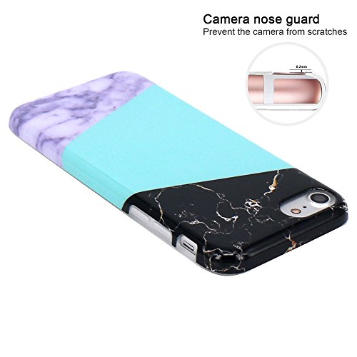 JIAXIUFEN TPU Gel Silicone Protettivo Skin Custodia Protettiva Shell Case Cover Per Apple iPhone 7 - Bianco Menta Verde Nero Composizione geometrica Marmo Design